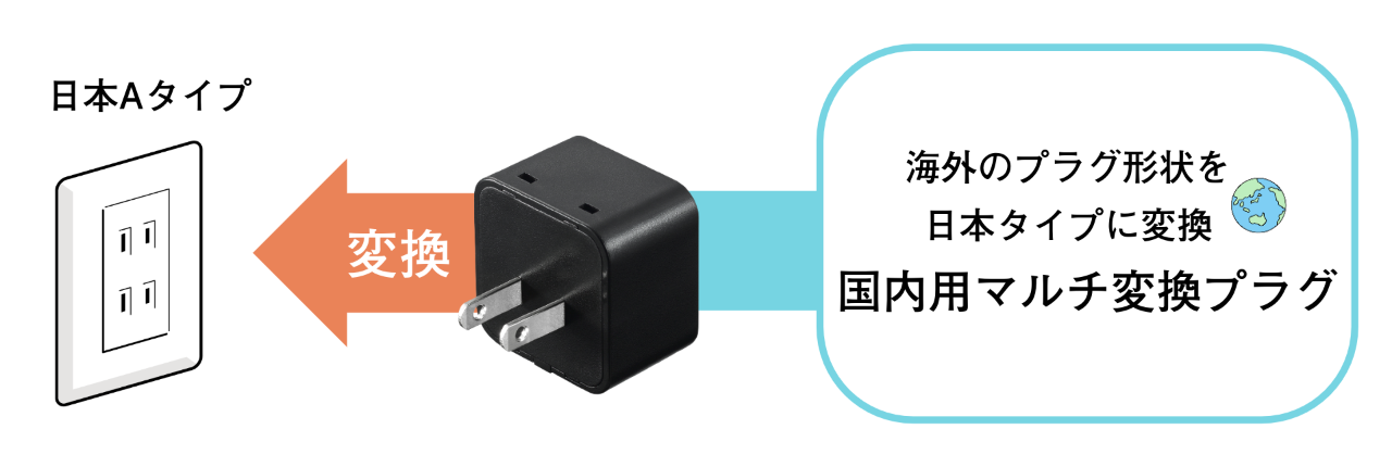これ1つで8種類のプラグ形状を日本Aタイプに変換できます。