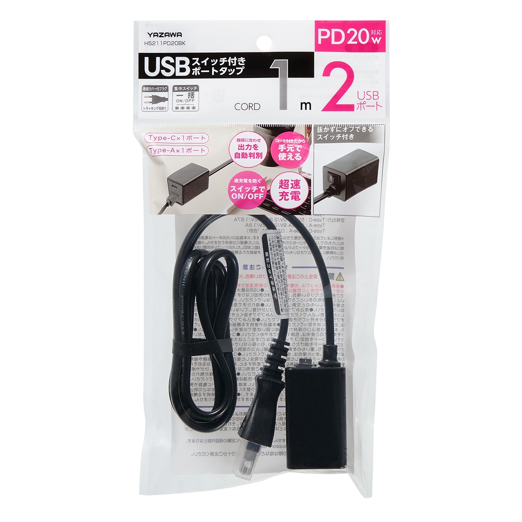 | 商品名 | スイッチ付USBタップPD20W黒1m |