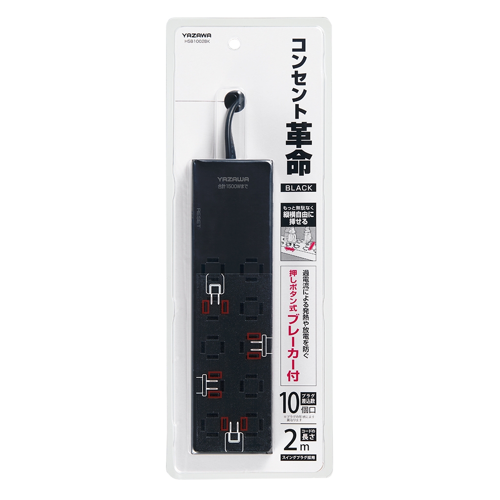 | 商品名 | コンセント革命タップ10個口 ブレーカー付黒 2m |