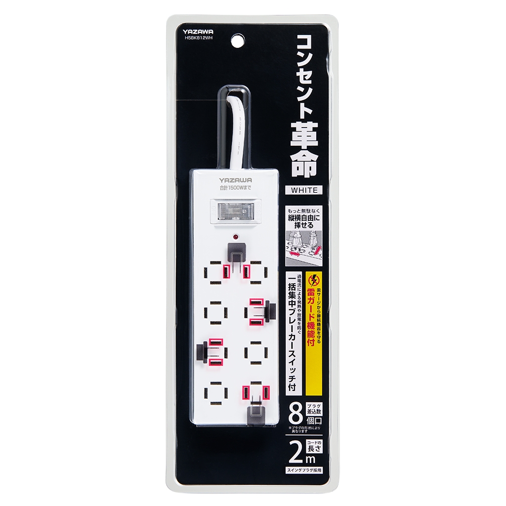 | 商品名 | コンセント革命8個口雷サージ付き ブレーカースイッチ付白 2m |