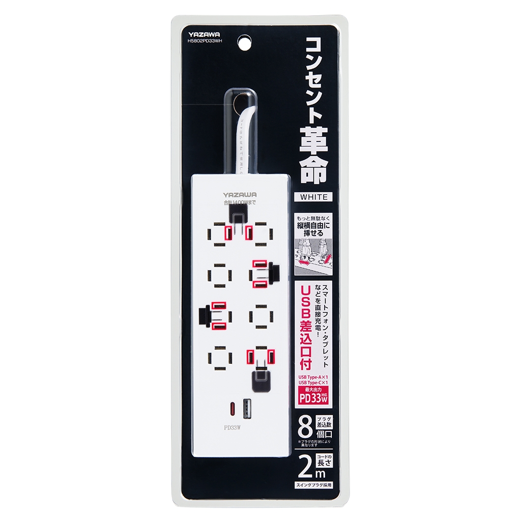 | 商品名 | コンセント革命8個口PD33W付白 2m |