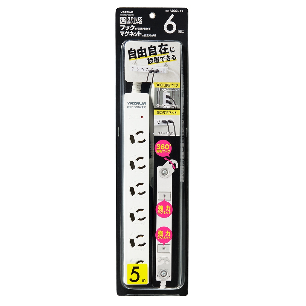 | 商品名 | 3P抜け止めマグネットフック付タップ6個口5m白 |