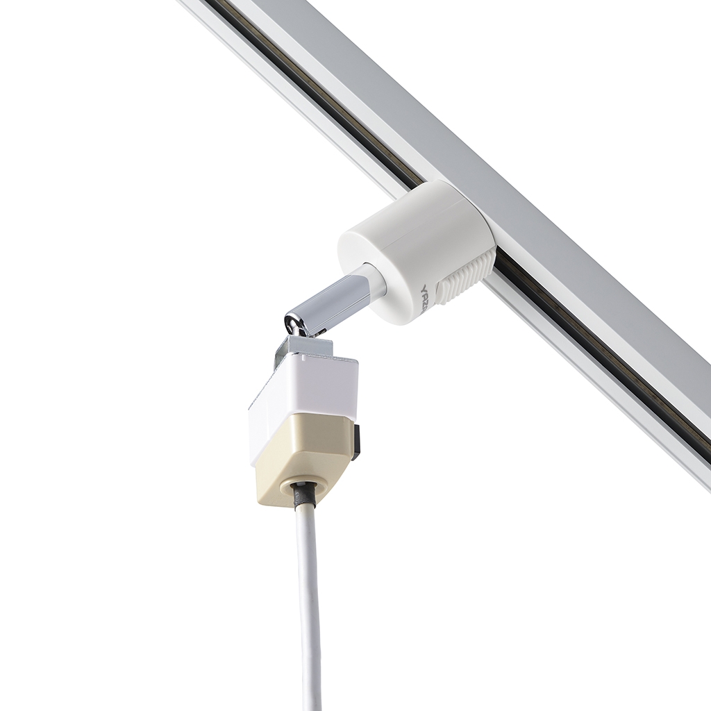 傾斜天井に設置されているライティングダクトレールに取り付け、角度を変えて引っ掛けシーリングに対応した照明器具をご使用いただけます。