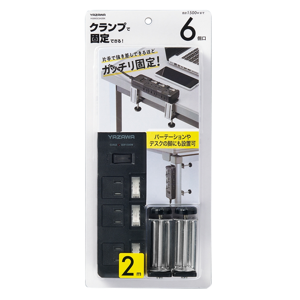 | 商品名 | 3個口+3個口タップクランプ付黒 2m |