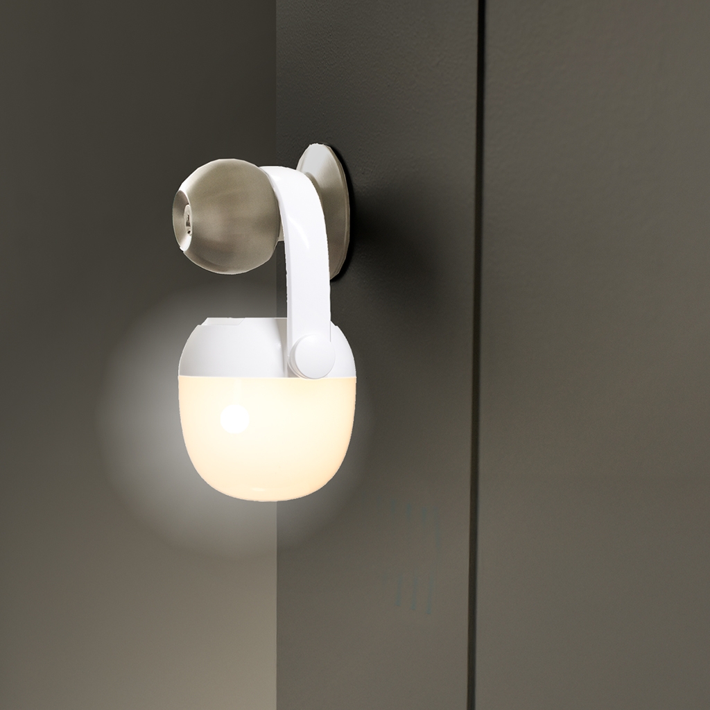 ■ 360°回転するフックを使えば、ドアノブや手すり、ロープにかけて照らすこともできます。